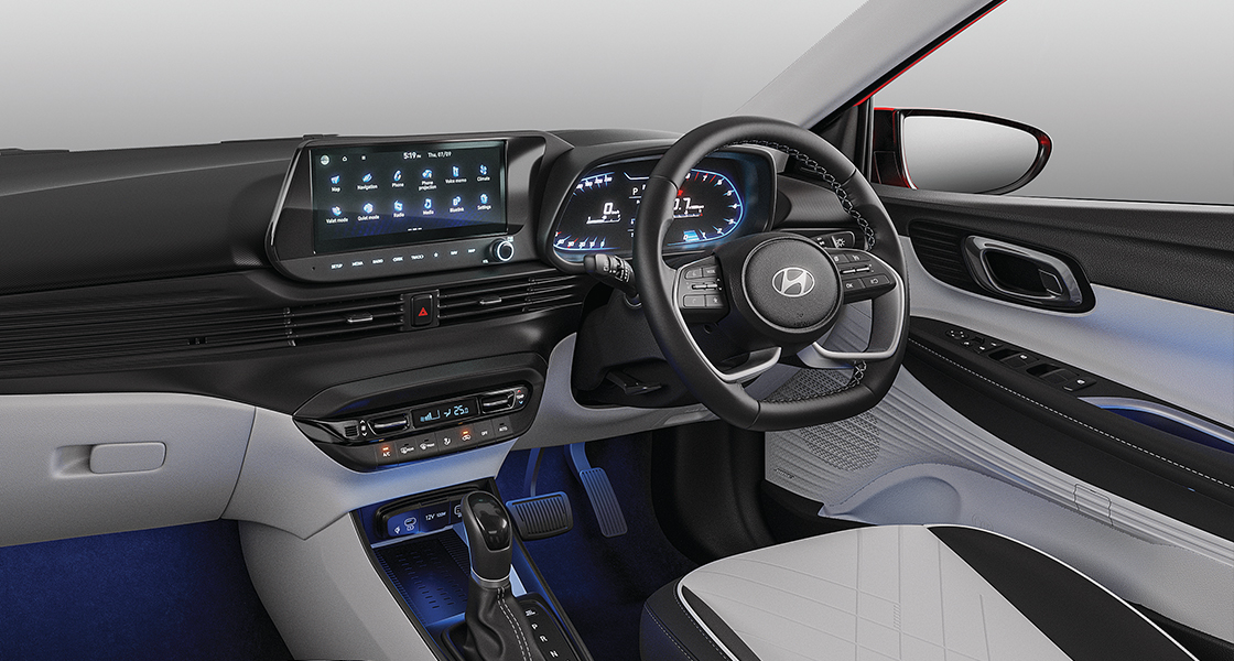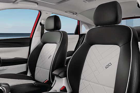 The interiors of the new Hyundai i20 mesmerize. Dual tone seats that look fabulous and enough space to lounge out in comfort. Ambient lighting that uplifts your mood and sliding front armrest that provides a more convenient way to relax.